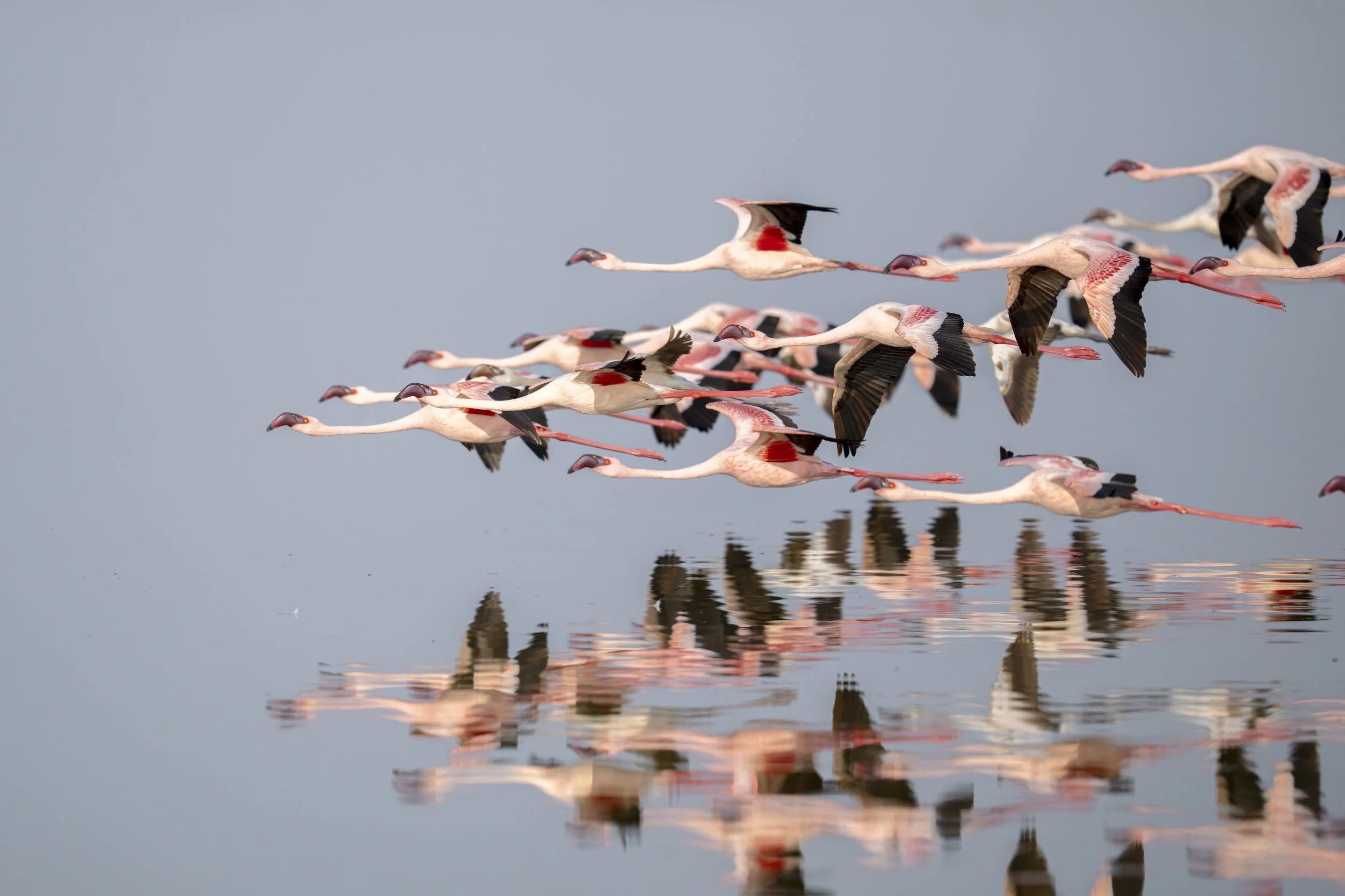 Flamingos in formation