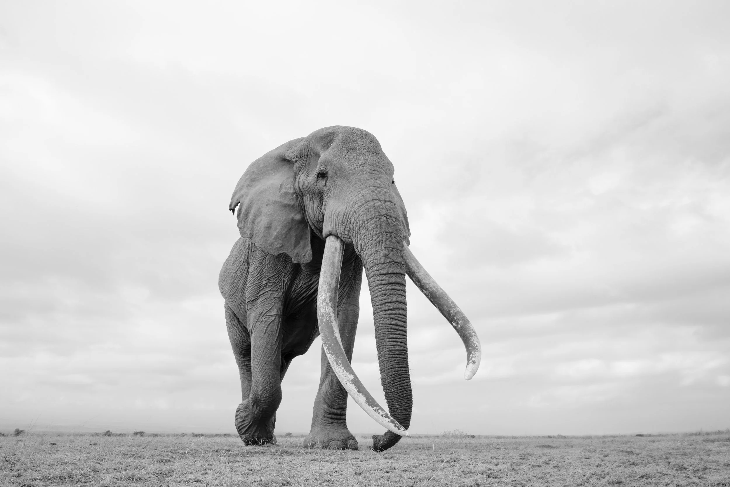 The iconic big tusker, Craig, striding though Amboseli